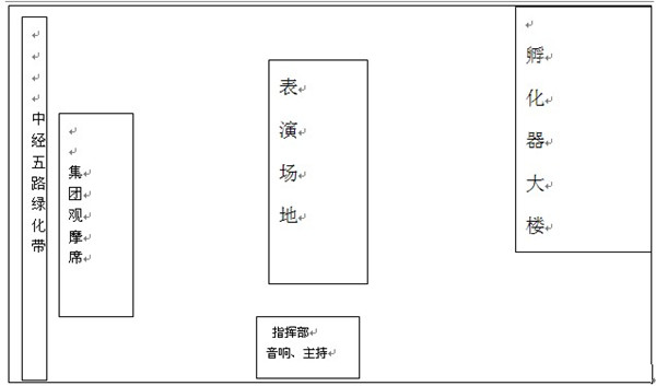 (2)物業(yè)公司消防員在停車場西側(cè)集團(tuán)觀摩團(tuán)旁列隊,但是應(yīng)當(dāng)注意隊列整齊,由楊衛(wèi)華負(fù)責(zé)整隊。