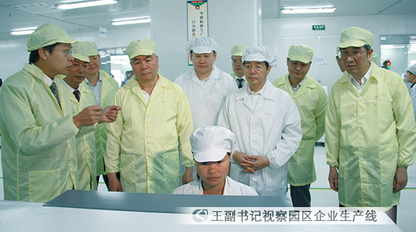 聶玉春副總經(jīng)理首先向王樂泉副書記轉達了熊群力董事長等集團領導的問候,歡迎王副書記蒞臨中電旗下企業(yè)視察指導。在園區(qū)展廳,聶總向各位領導和嘉賓介紹了中國電子集團為了響應中央西部大開發(fā)的號召,落實胡錦濤總書記關于“廣西沿海發(fā)展應形成新的一極”的重要指示精神,體現(xiàn)中央企業(yè)的政治責任與社會責任,與廣西壯族自治區(qū)人民政府合作建設中國電子北海產(chǎn)業(yè)園,充分發(fā)揮雙方的優(yōu)勢,抓住北部灣經(jīng)濟區(qū)開發(fā)、開放和東盟自由貿(mào)易區(qū)建立的機遇,打造西部沿海地區(qū)電子信息產(chǎn)業(yè)生產(chǎn)制造基地及信息、服務、貿(mào)易中心的戰(zhàn)略舉措,介紹了北海產(chǎn)業(yè)園的建設發(fā)展和產(chǎn)業(yè)集聚情況,并陪同參觀了相關企業(yè)的展品及景光電子生產(chǎn)車間。