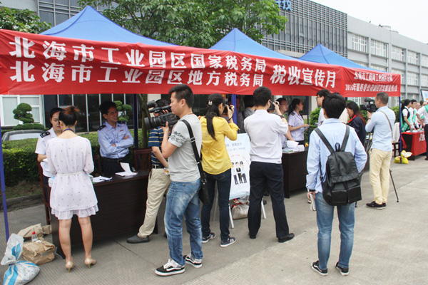 2016年4月19日,北海市工業(yè)園區(qū)國稅局、地稅局、工商局工業(yè)園區(qū)分局、農(nóng)業(yè)銀行北海分行走進(jìn)北海工業(yè)園區(qū),在中國電子北海產(chǎn)業(yè)園現(xiàn)場為企業(yè)宣講營改增、解讀稅收優(yōu)惠政策、服務(wù)非公有制經(jīng)濟(jì)發(fā)展及金融服務(wù)。