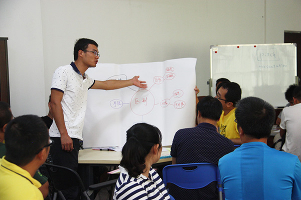 體驗(yàn)課由中國(guó)地質(zhì)大學(xué)博士、子謙國(guó)際創(chuàng)業(yè)教育學(xué)院首席專家、河北地質(zhì)大學(xué)創(chuàng)新創(chuàng)業(yè)教育學(xué)院執(zhí)行院長(zhǎng)與教學(xué)總監(jiān)朱燕空作為主講。體驗(yàn)課以新常態(tài)下雙創(chuàng)發(fā)展及市場(chǎng)拓展為背景,就創(chuàng)業(yè)思維內(nèi)涵、體驗(yàn)創(chuàng)業(yè)思維之旅、創(chuàng)業(yè)思維與管理思維對(duì)比,與學(xué)員們探討交流雙創(chuàng)發(fā)展之路,布置各小組“制造未來(lái)”任務(wù),設(shè)想了創(chuàng)業(yè)之路所遇到各種機(jī)遇與困阻。朱院長(zhǎng)表示,創(chuàng)業(yè)成長(zhǎng)期,大部分創(chuàng)業(yè)青年不缺乏目標(biāo)和想法,著實(shí)選擇一個(gè)有效的路徑去實(shí)現(xiàn),路徑有很多,每條路徑都代表著一種可能性,并且充滿了不確定性,關(guān)鍵在于如何找到有效的路徑,需要我們?nèi)バ袆?dòng)、反思和調(diào)整;而不是過(guò)多的詳細(xì)規(guī)劃,注重逐步執(zhí)行。面臨不確定性,朱院長(zhǎng)結(jié)合自身創(chuàng)業(yè)經(jīng)驗(yàn),與學(xué)員們探討分享創(chuàng)業(yè)新思維與企業(yè)管理模式,并運(yùn)用了大量案例對(duì)市場(chǎng)拓展做指導(dǎo)。課堂最后,朱院長(zhǎng)與學(xué)員逐個(gè)交流創(chuàng)業(yè)相關(guān)熱門話題。