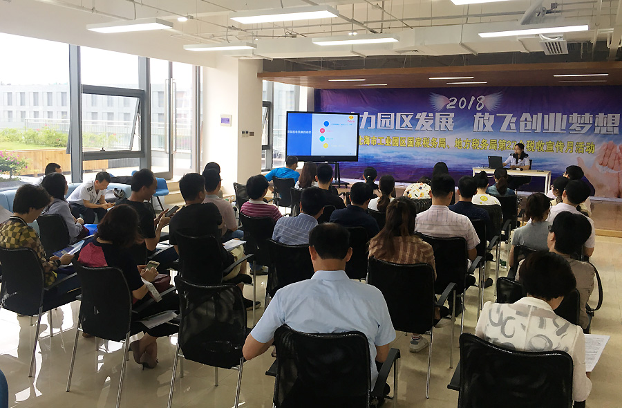 2018年4月25日,北海市工業(yè)園區(qū)國家稅務(wù)局、地方稅務(wù)局聯(lián)合在中國電子北部灣眾創(chuàng)空間舉辦了以“助力園區(qū)發(fā)展,放飛創(chuàng)業(yè)夢想”為主題的第27個(gè)稅收宣傳月活動,中國電子北部灣孵化器40余家企業(yè)代表參與了此次活動。