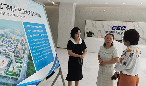 2023年7月19日上午,北海市市委常委、市紀(jì)委書記劉纓帶隊(duì)到中國電子北部灣信息港開展“壯大實(shí)體經(jīng)濟(jì)推動(dòng)高質(zhì)量發(fā)展”調(diào)研。中國電子北海產(chǎn)業(yè)園發(fā)展有限公司副總經(jīng)理劉曉娟現(xiàn)場向劉纓書記匯報(bào)了信息港項(xiàng)目建設(shè)、運(yùn)營情況。