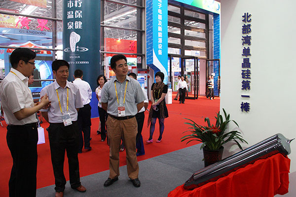 在中國電子北海產業(yè)園展臺,長城、朗科、冠捷等企業(yè)擺上了自己的“拳頭”產品,受到了客商們關注。負責電子產業(yè)園展臺的夏嶺告訴記者,今年展出的項目主要是以電子產品制造孵化服務、產業(yè)配套及綜合服務、商貿及物流服務、國家軟件與集成電路服務等服務平臺,以平臺招商,以平臺做大做強北海電子信息產業(yè)。從參展的情況來看,有10多家企業(yè)進行了合作洽談,效果比較理想。